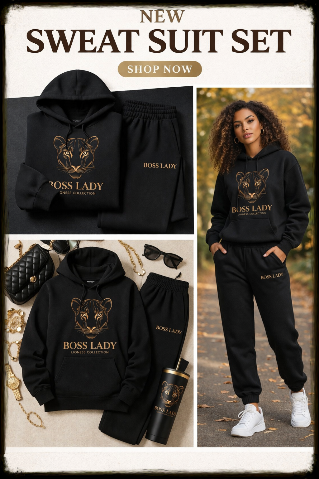 Introducing the Premium Lioness Sweatsuit Set Collection, a stylish and comfortable range designed for those who value both fashion and relaxation. Each set merges effortless style with luxurious comfort, making it perfect for lounging at home or stepping out in confidence. Elevate your casual wear game and experience the perfect blend of chic and cozy with our Premium Lioness Sweatsuit Set Collection.